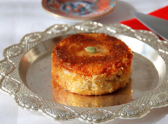 A kind of cheese cake which is made up of cottage or home made cheese (chenna), sugar, cashewnuts, raisins which are baked for several hours (near to burn) and is sweetened with sugar or caramel.