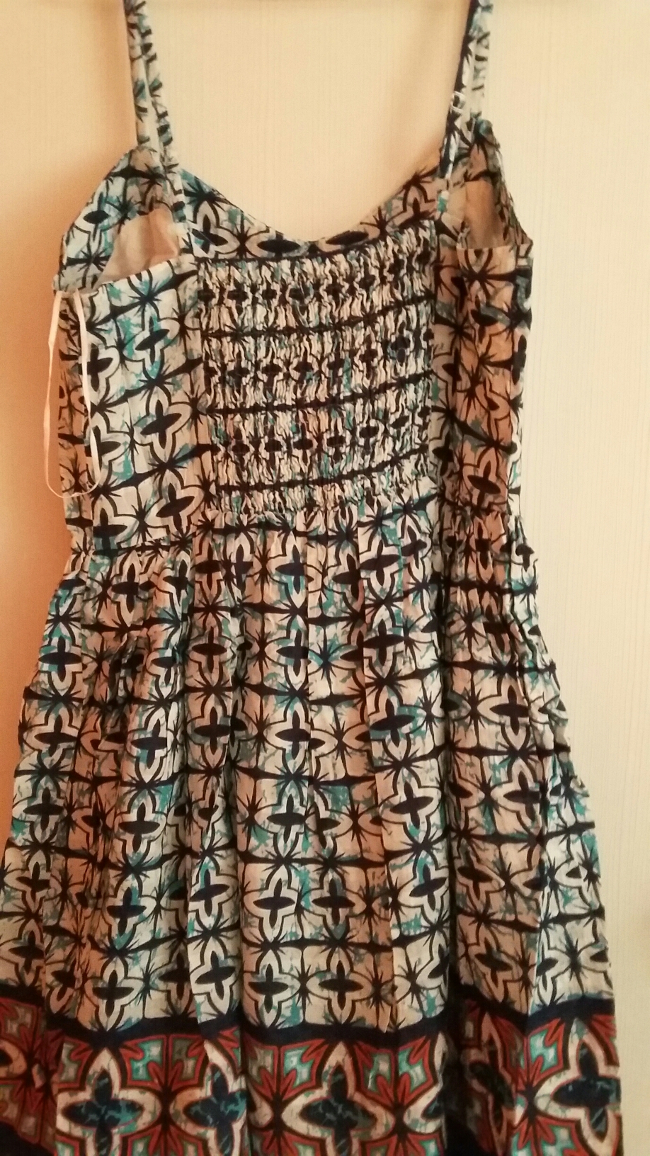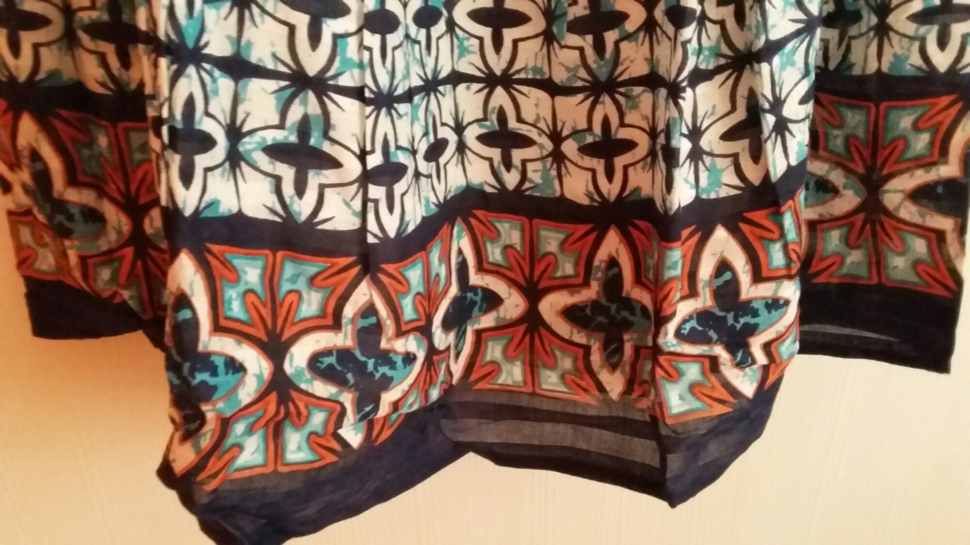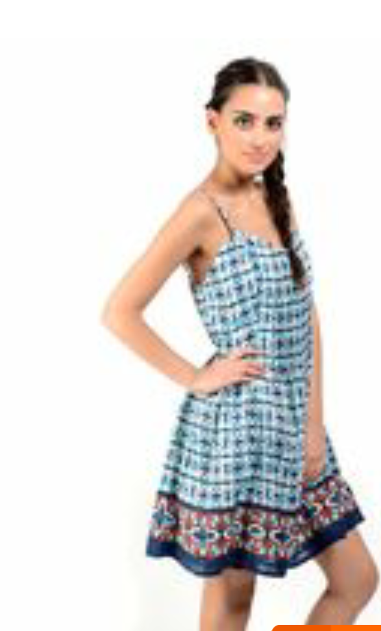 This cotton short frock with flares and straps was just what a girl could ever ask for .Beautiful geometrical printed with a contrasting border in indigo and blue crossing colors it just looked exhilarating.