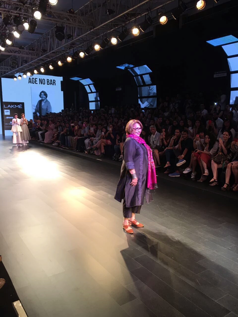 The forth one classical yet magnificent of all portraying the theme, age no bar with long kurta, white shirt, belted dress, floral tops, white and black coats and red shirt dress. And guess who show stopped for this style, well, it was none other than yesterday’s super star, Helen. Clad in kurta and black caperies complimented with the colorful patola dupatta, she certainly rocked the ramp.