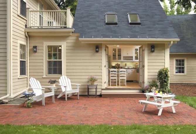 2) Deck or patio — When there’s ample of space with you and you love English houses, you can simply add a deck or patio to your exteriors. Just a wooden plank to create a levelled floor outside and you can place there your comfort furniture, your divans or just keep it a plain party place. The choice is yours and the space is a blessing for outdoor lovers
